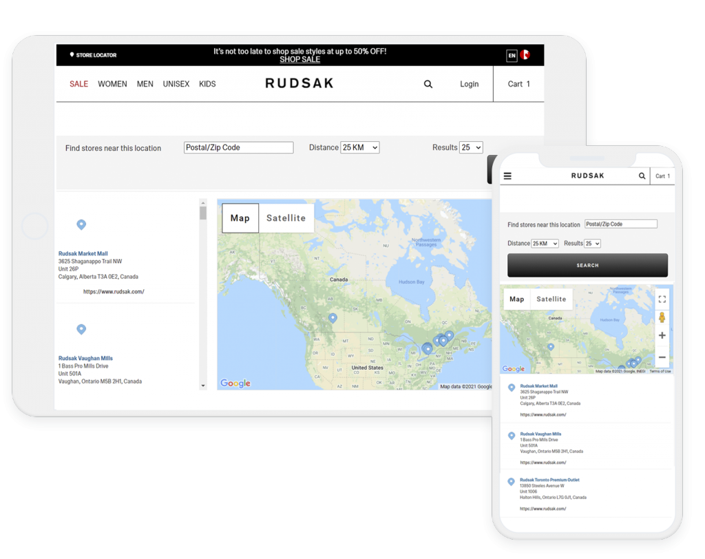 For a long time, the client thought to update the website’s appearance and rework certain functionality, and we were challenged to fulfill all client’s desires using our expertise. The client already had clear design requirements and website mockups and our development team needed to turn them into a working e-commerce website. In addition to the website development, the shopping cart also required a rework. And the final desire was the implementation of a Google Maps-based store locator.
